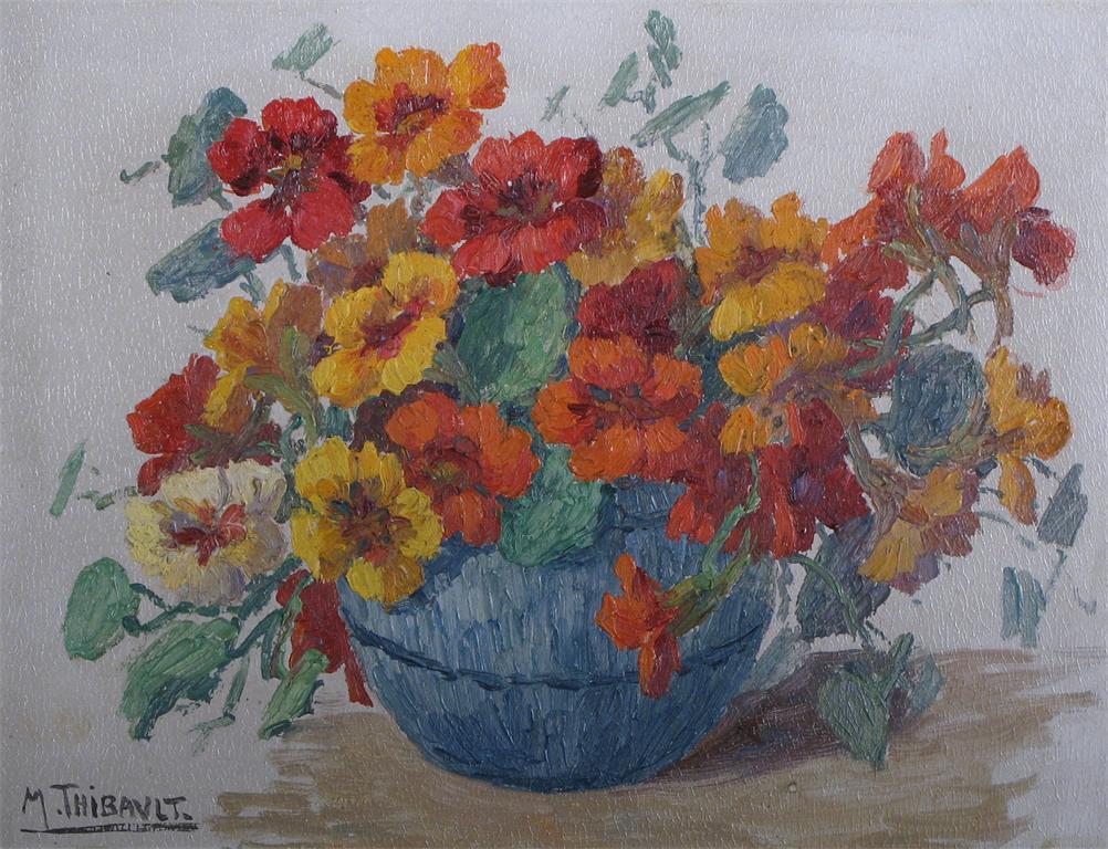 Marcel Thibault (20th Century) Nasturtiams Signed Oil on board 25 x 33cm; 10 x 13in