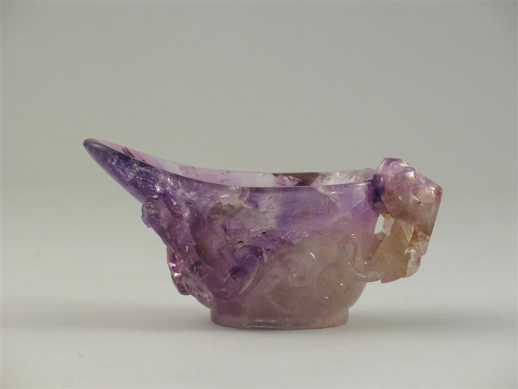 A Chinese carved amethyst libation cup