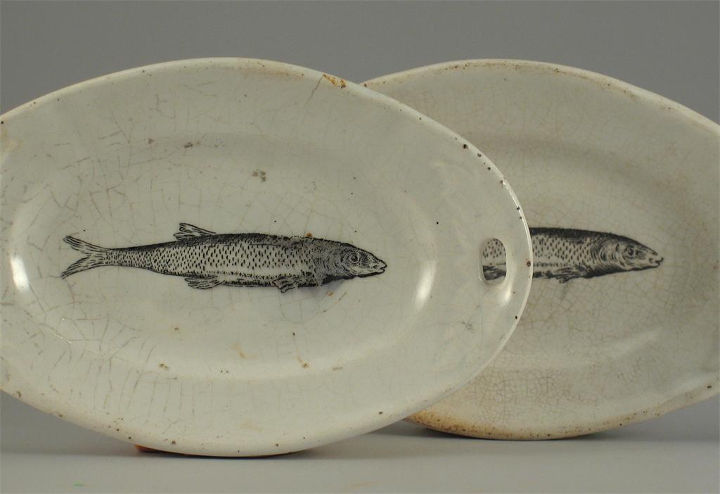 A small pair of caviar dishes, each printed with a fish, print 'K P M Dreylingsbusch' marks, probably 19th century, 13cm. (2)
