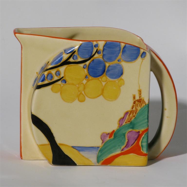 'Seven Colour Secrets' a Clarice Cliff Fantasque Bizarre Stamford jug painted in colours printed...