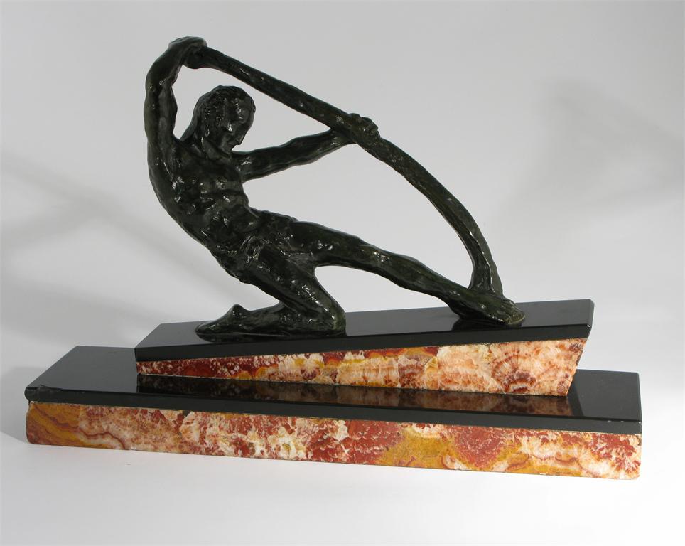 A patinated bronze model of an athlete cast from a model by Michelle Decoux