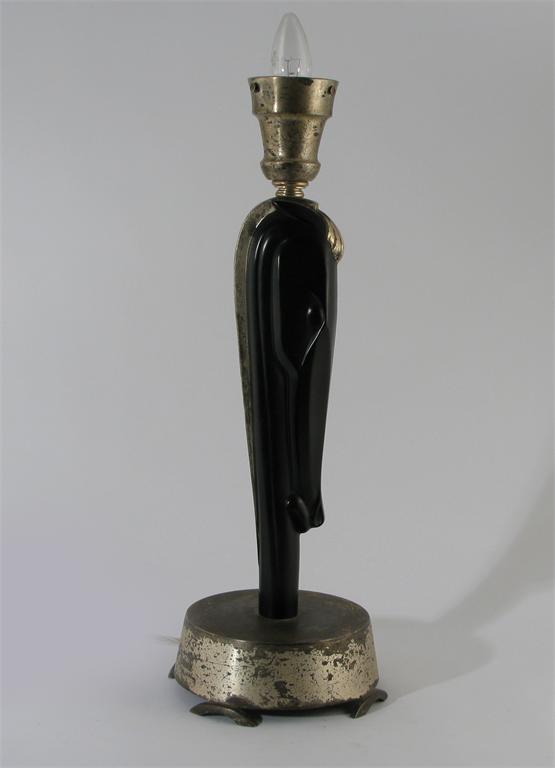 A patinated metal table lamp modelled as a stylised elongated horse head unsigned