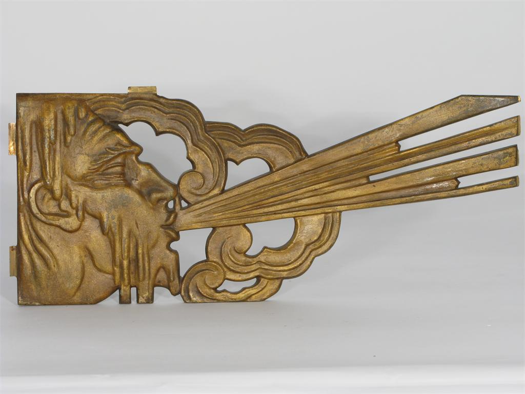 'The Wind' a gilt bronze lift panel cast from a model by C A Llewellyn-Roberts for the Selfridges lift, unsigned 42.5cm. wide