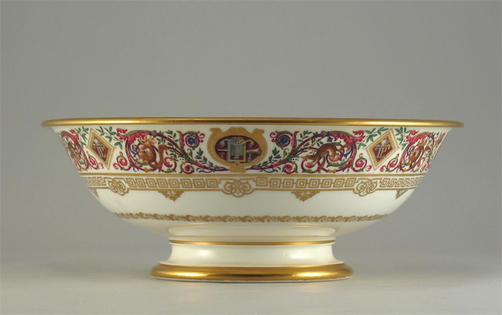 A S style salad bowl, decorated with a band with animals amidst leaf scrolls, the interior with a gilt geometric pattern, printed marks, 25cm.