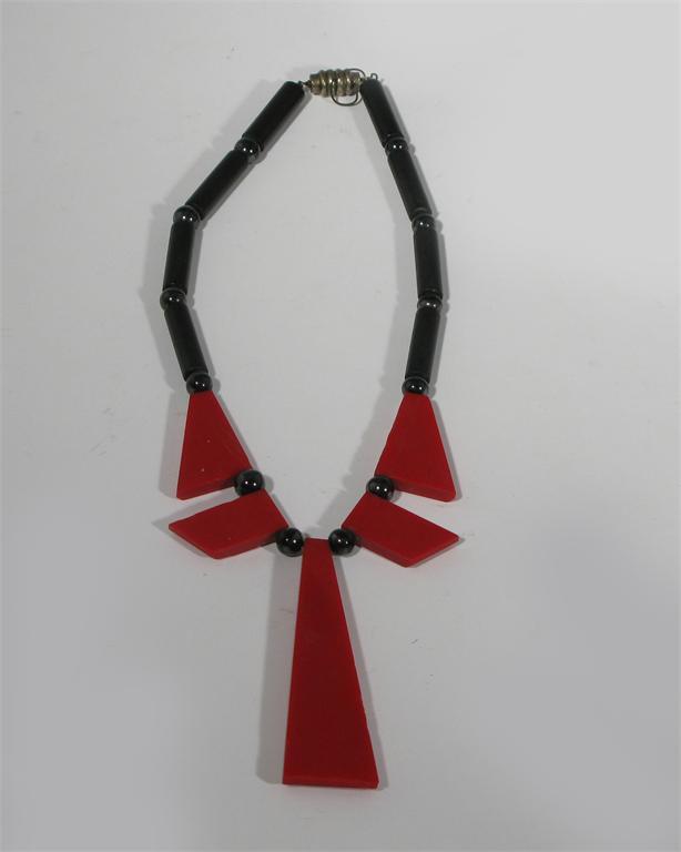 A black and red plastic necklace in the style of Auguste Bonaz Literature Art Deco 1910-1939 V&A...