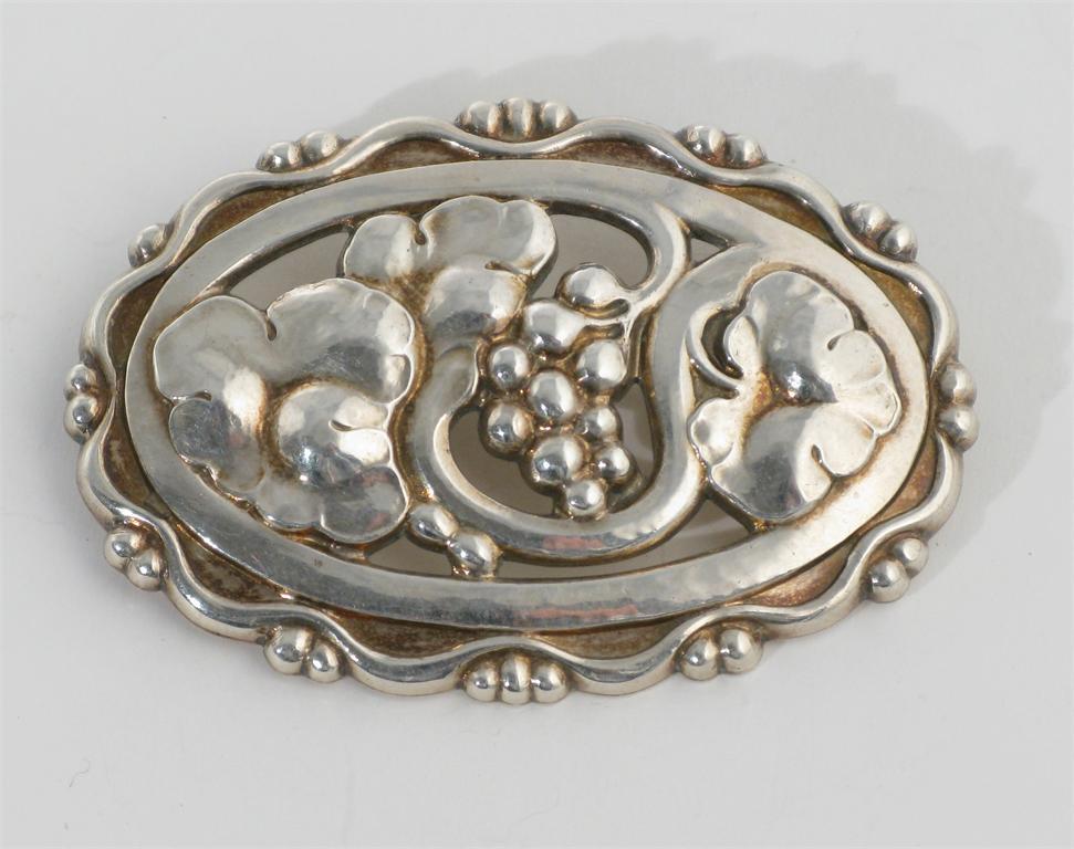 A Georg Jensen silver brooch model no. 177A, cast as a pierced fruiting vine stamped marks 6cm. wide