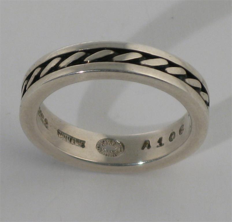 A Georg Jensen silver ring model no.A106, simple rope twist border stamped marks, size L