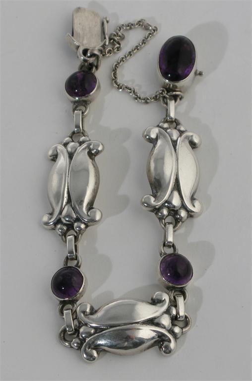 A Georg Jensen silver and amethyst link bracelet model no.11 stamped marks 13.5cm. long
