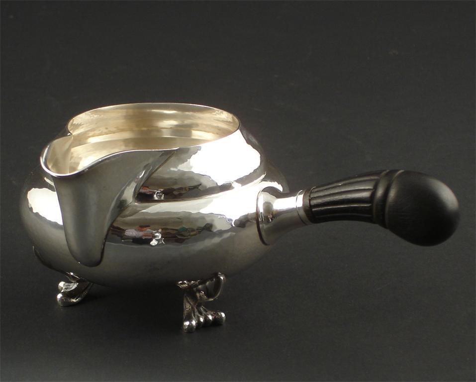 A Georg Jensen silver and ebonised wood sauce boat model no.2D stamped marks 17cm. wide