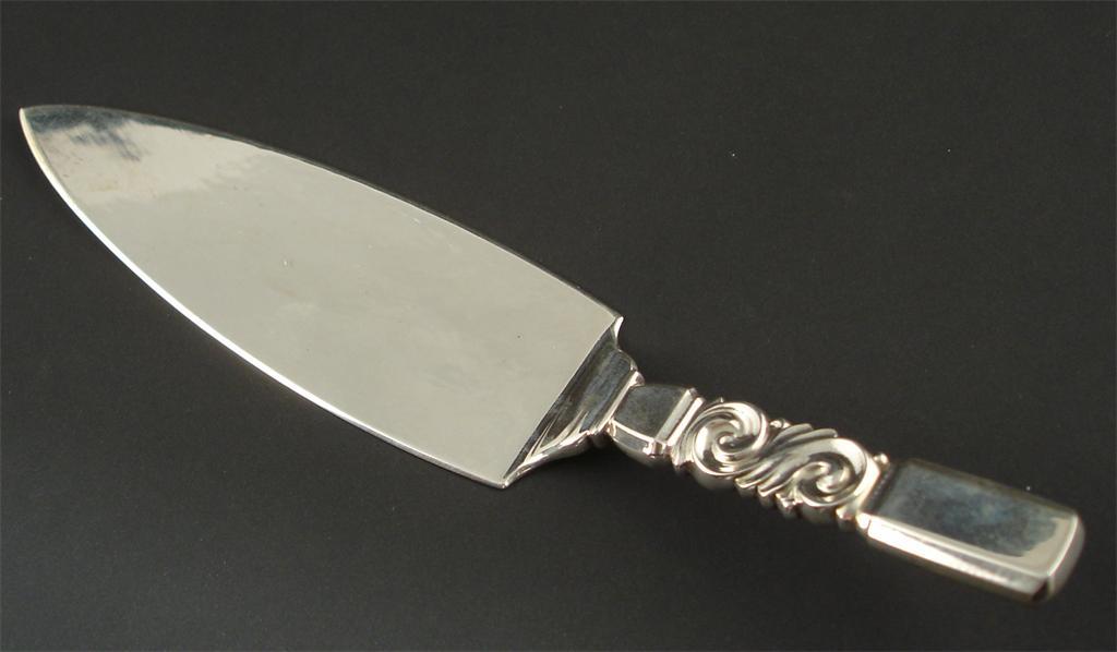 A Georg Jensen silver Scroll pattern pie server stamped marks 26cm. long