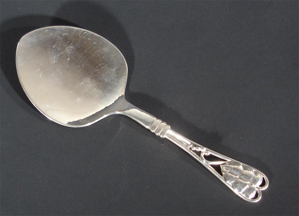 A Georg Jensen silver pie server model no.71, with leaf and berry terminal stamped marks 18cm. long