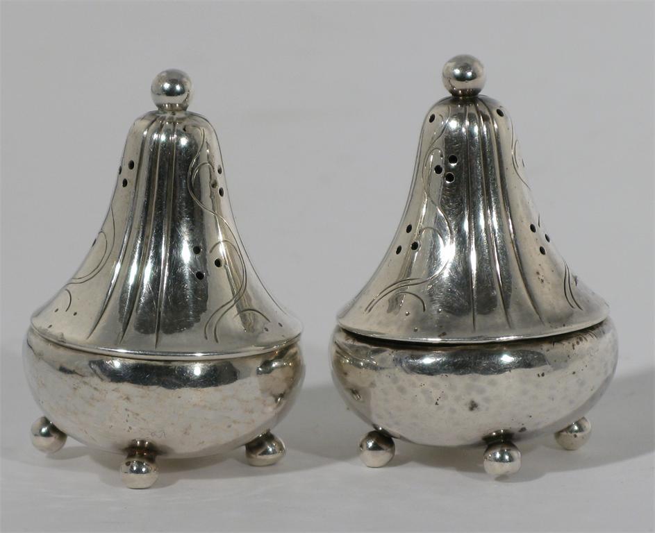 A Georg Jensen silver salt and pepper model no.433 stamped marks 5cm. high
