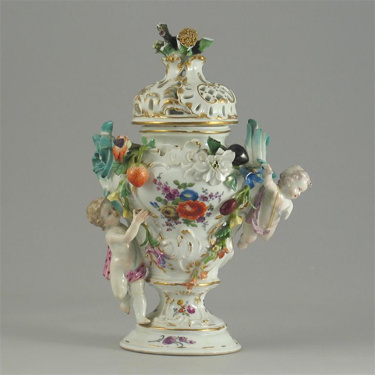 A Meissen rococo moulded pot pourri vase and cover