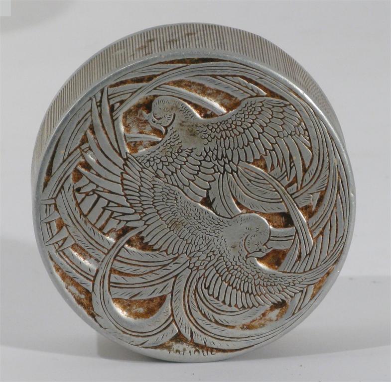 'Fleurs D'Amour' a Roger Et Gallet cast metal powder box and cover designed by Rene Lalique