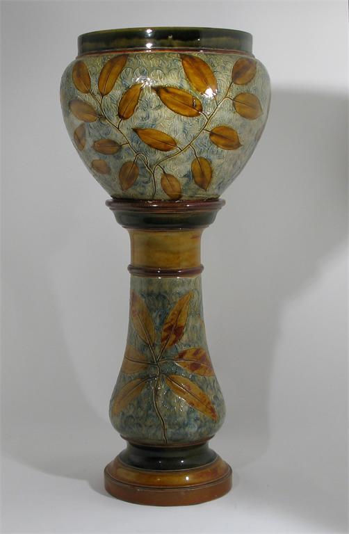 A Royal Doulton Natural Foliage stoneware jardiniere and stand impressed and decorated with leaves