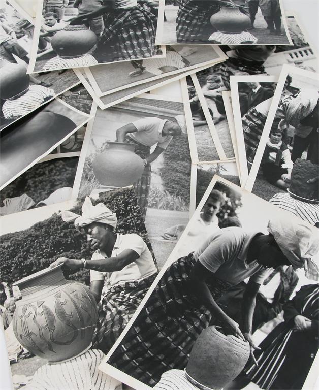 A series of eighteen black and white photographs of Ladi Kwali building and decorating a...