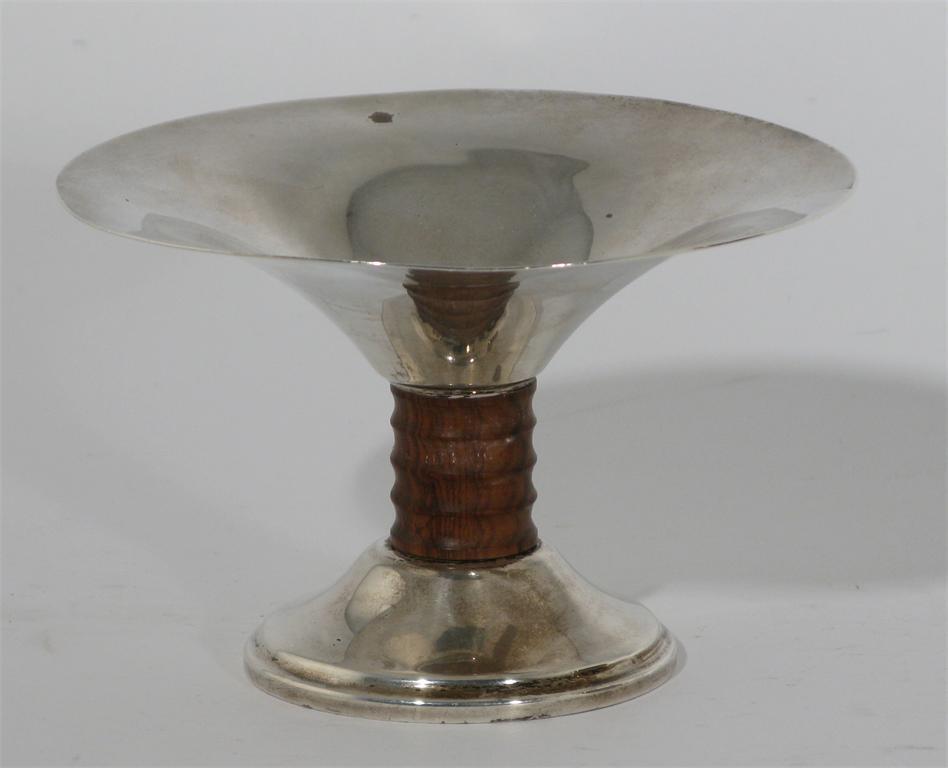 A Hollings & Hitchinson silver tazza with macassar wood stem stamped marks, H&H Birmingham 1934 12cm. diam.