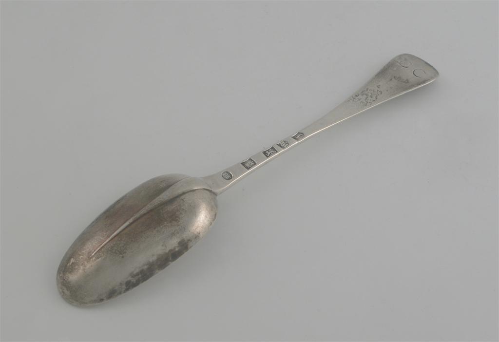 A George II West Country Hanoverian pattern tablespoon, with moulded rattail, initialled on the terminal 'DC', by Philip Elston, Exeter 1730, 2oz.