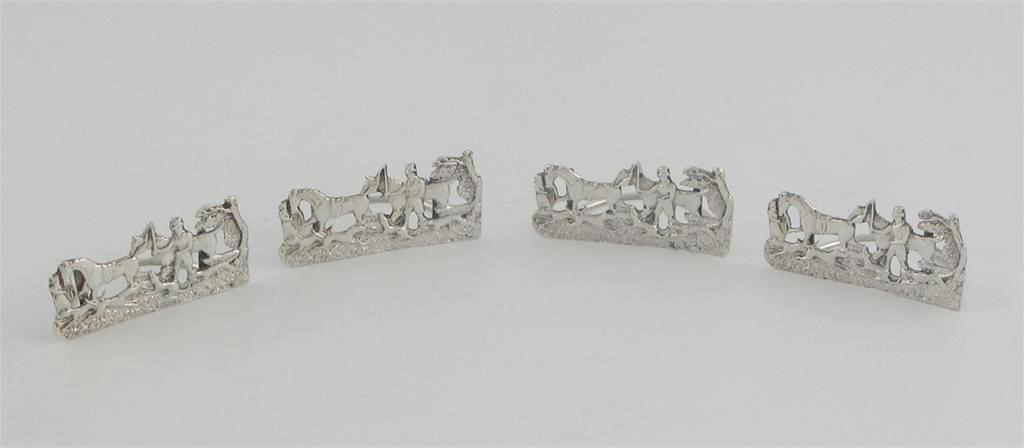 A set of four late Victorian menu holders, on a fox hunting theme, by S. Clifford, London 1898, 1.25oz. (4)