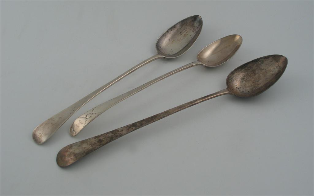 Three George III Old English pattern serving spoons: an Irish example by Law & Bayly