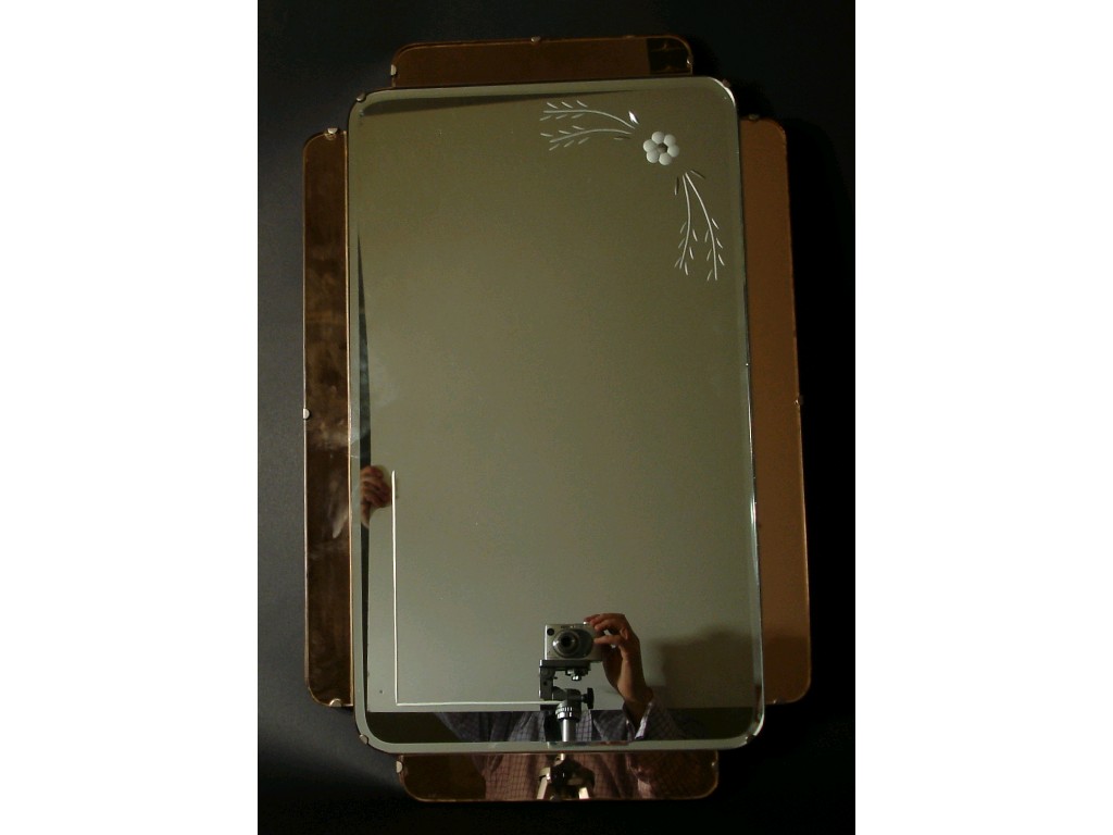 Three various Art Deco style mirrors variously etched and tinted, widest 71.5cm.