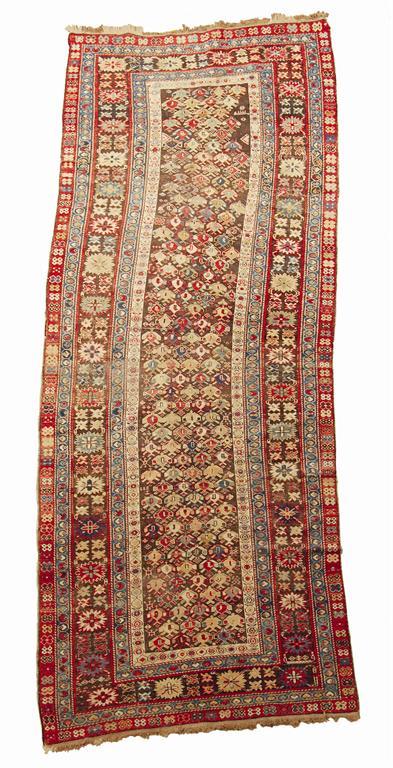 A Karabakh runner, South West Caucasus, late 19th century, 121 x 48.25in (307 x 122.5cm). Worn, with a kink.