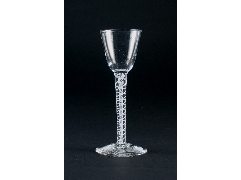 A wine glass, with a rounded bowl, on a double series opaque twist stem, c.1770, 15.3cm.