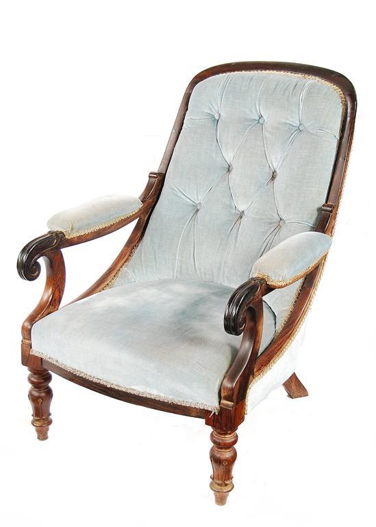 An early Victorian rosewood frame easy open armchair