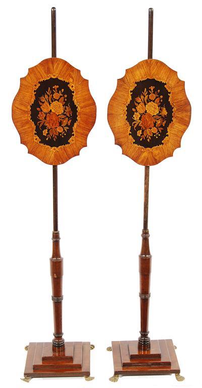 A pair of late 19th century continental pole firescreens