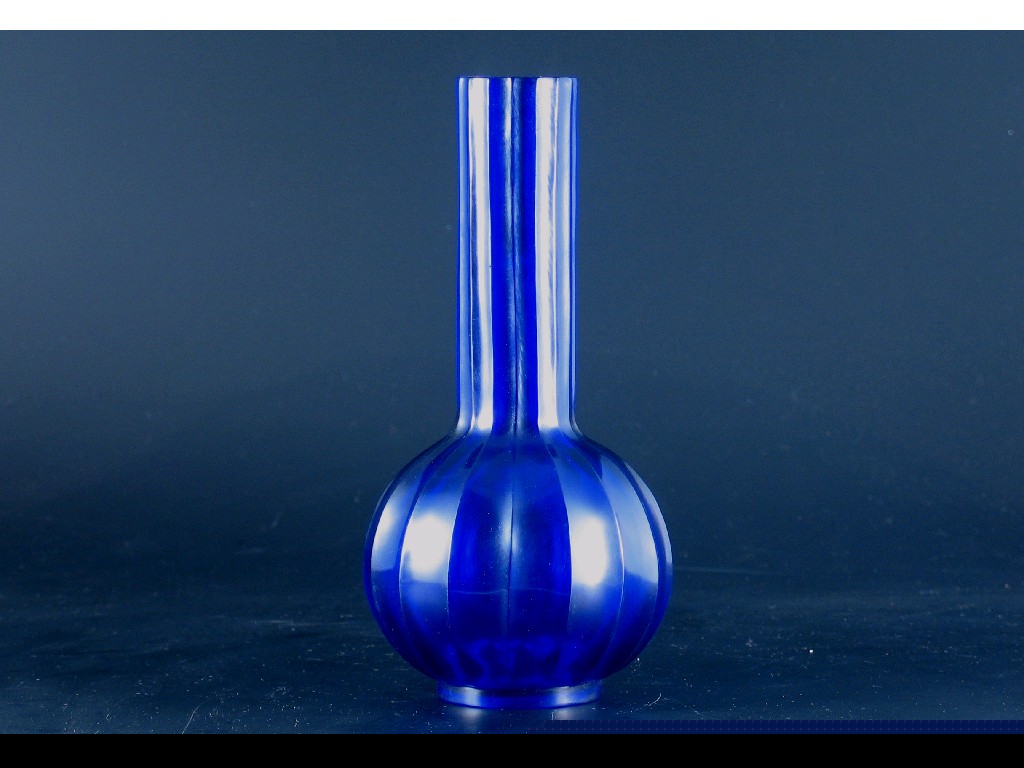 A Chinese blue faceted Beijing glass vase, with a tall neck and globular body, Qianlong mark but later, 21.5cm.