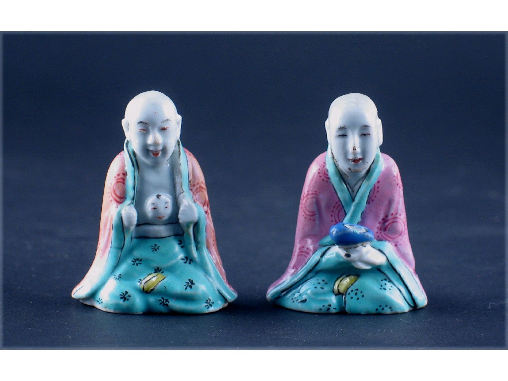 Two small Chinese famille rose models of seated men, 18th/19th century, 6cm. (2)