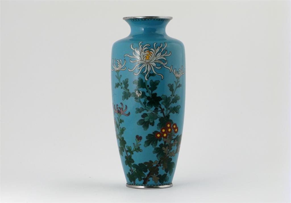 A Japanese cloisonn? vase, decorated with flowers on a turquoise ground, Meiji 1868-1912, 20.5cm.