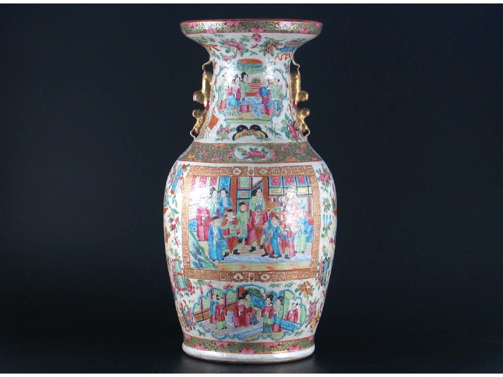 A Chinese Canton famille rose vase, decorated with panels of figures, 19th century, 43cm.