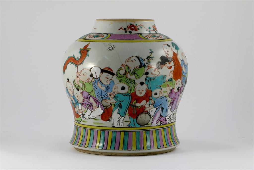 A Chinese famille rose vase, decorated with a multitude of boys at play, 19th century, 22cm.