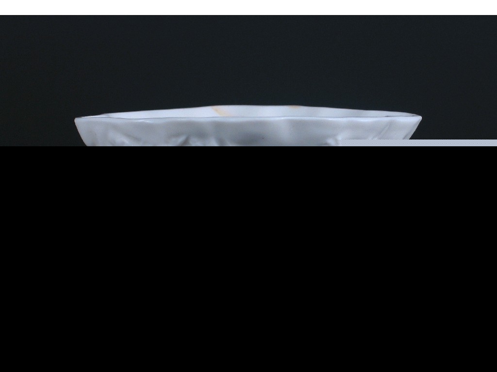 A Chinese blanc de Chine libation cup, moulded with prunus, a deer, a phoenix and a tiger. A rim crack. 18th century, 12cm.