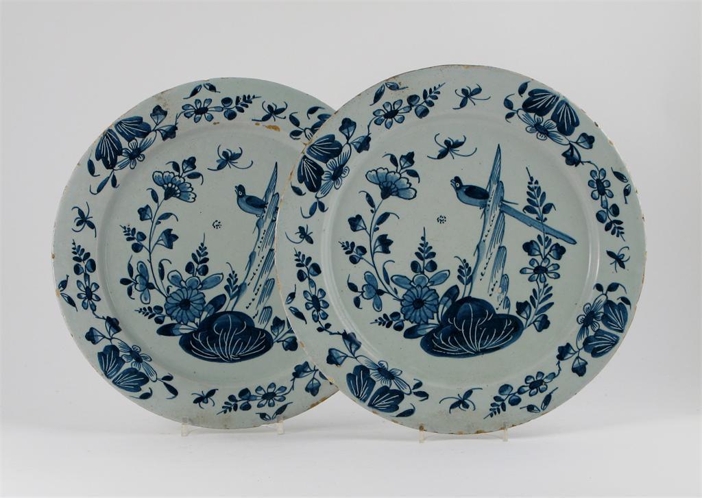 A pair of Delft blue and white plates