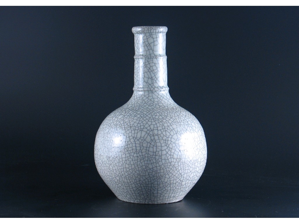 A Chinese crackle-ware bottle, with a ribbed cylindrical neck, 18th/19th century, 23.5cm.