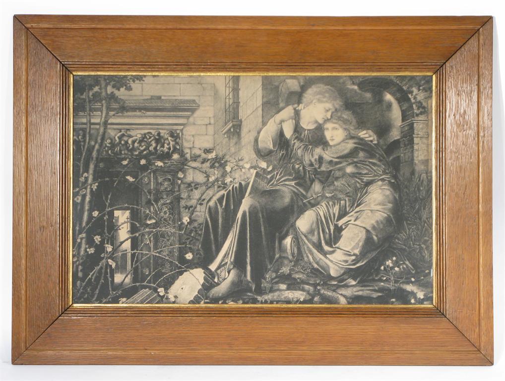 'Love among the Ruins' a Frederick Hollyer print after the original by Sir Edward Coley Burne-Jones, framed impressed Hollyer mark image 51 x 33cm.