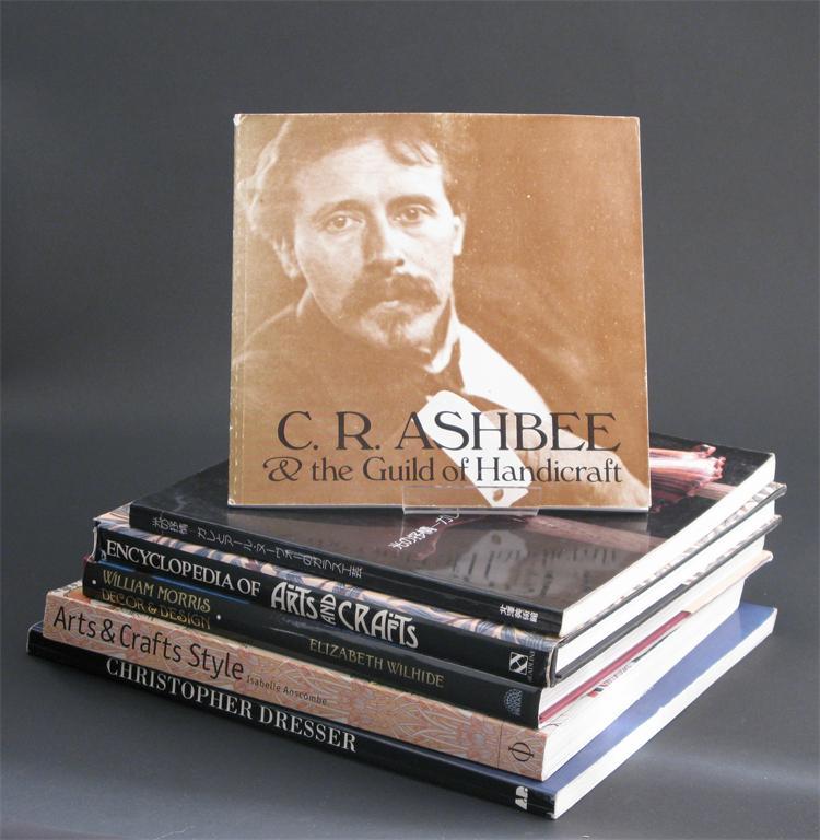 'C R Ashbee & The Guild of Handicrafts' Cheltenham Museum catalogue, and Christopher Dresser by Stuart Durant, Arts and Crafts by Isabelle Anscombe, two other books on Arts and Crafts and a Japanese catalogue of Galle and art glass
