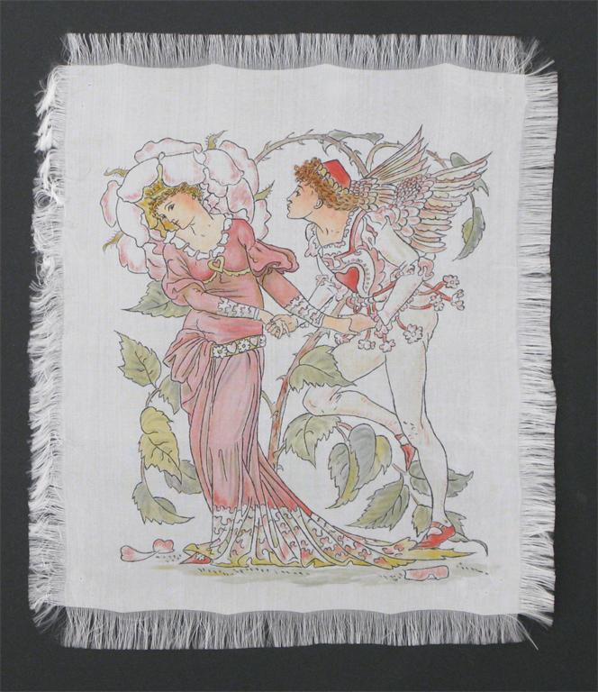 A set of twelve Flower Fairy silk paintings after a design by Walter Crane probably manufactured...