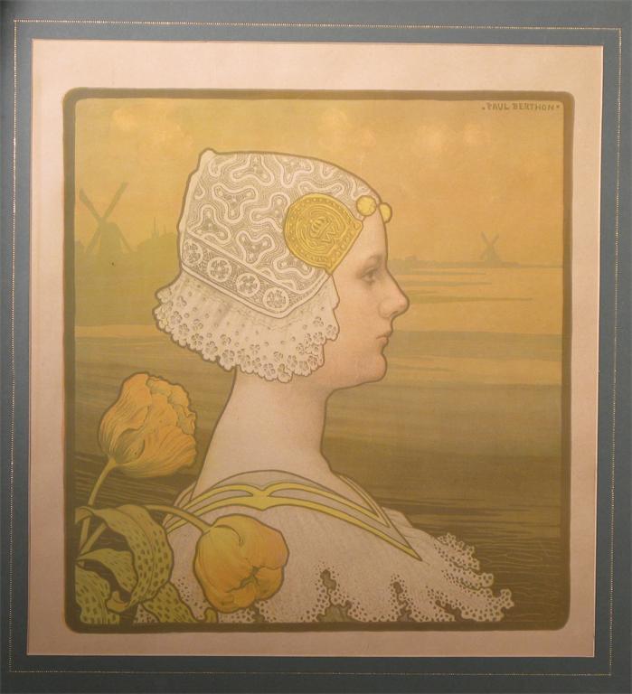 An Art Nouveau lithograph by Paul Berthon, in colours, framed signed in the print, not mounted frame size 57 x 53cm.
