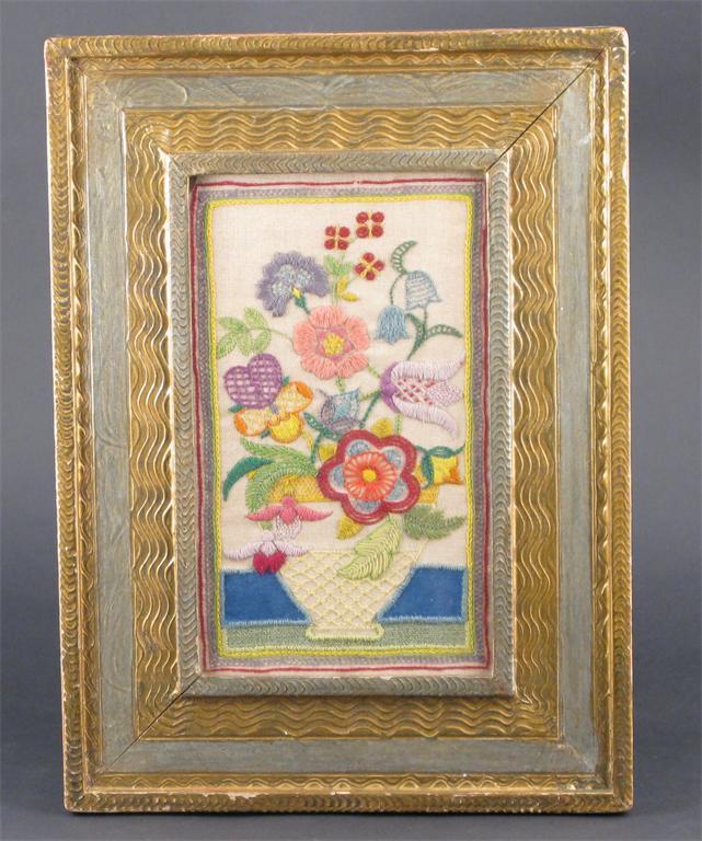 'Group of Flowers' a Rowley Gallery framed embroidery by Winifred McConnell original paper...