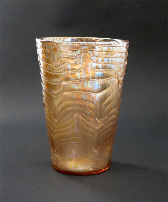 A tall Loetz beaker vase surface trailed decoration, splashed iridescence unsigned 24cm. high