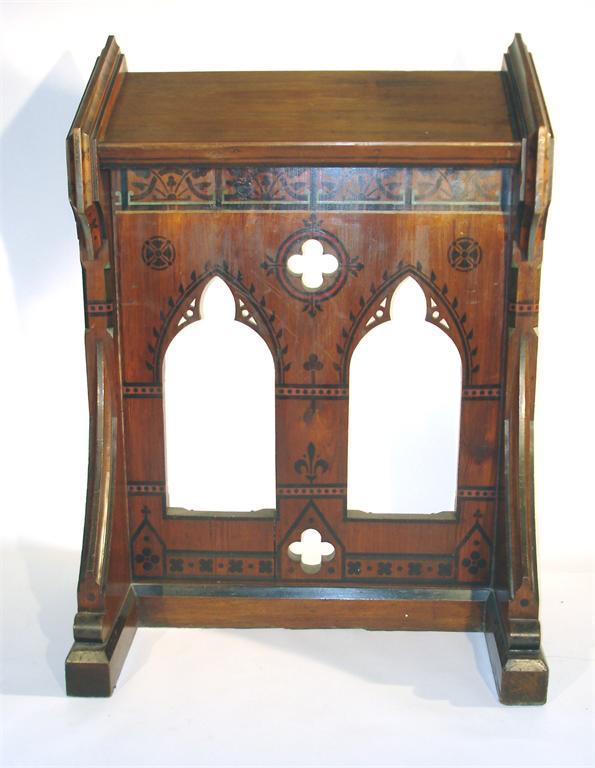 A Gothic Revival pine lectern the design attributed to G.E.Street, with carved and stencilled decoration unsigned 122cm. high, 87cm. wide