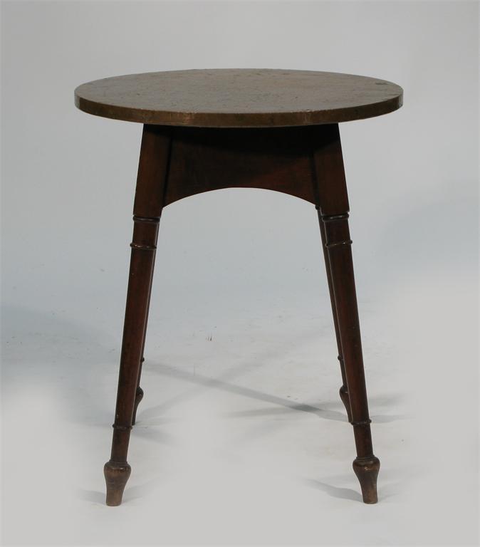 A copper topped side table on turned legs 64cm. high