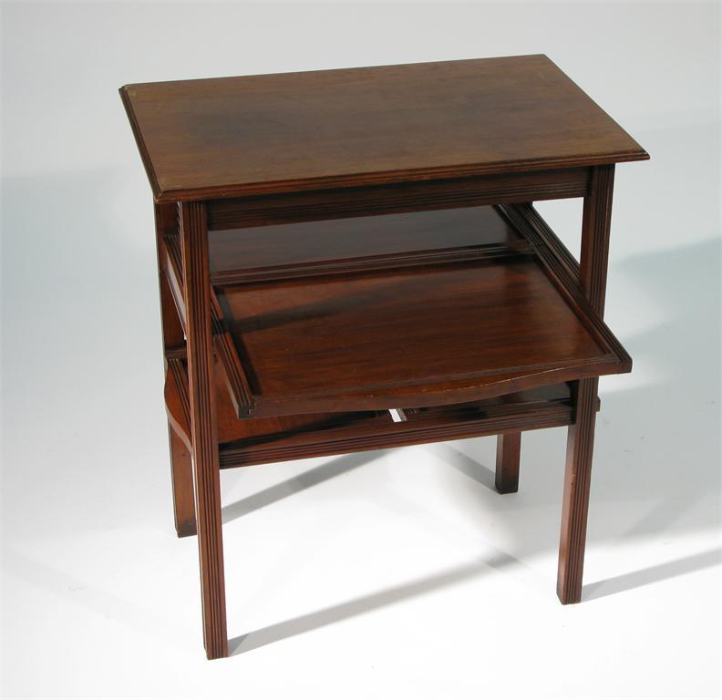 An Aesthetic Movement side table with extending, sliding shelves unsigned 68cm. high