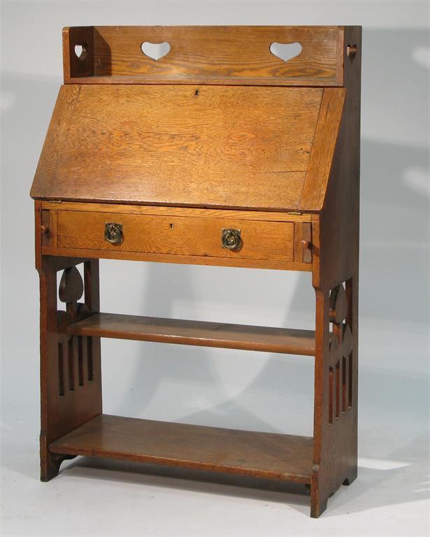 A Liberty & Co oak bureau with carved heart-shaped foliage panels