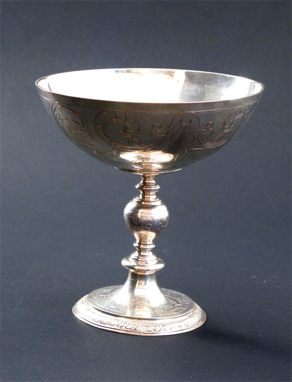 A Richard Comyns silver chalice engraved with wild rose and thistle swags
