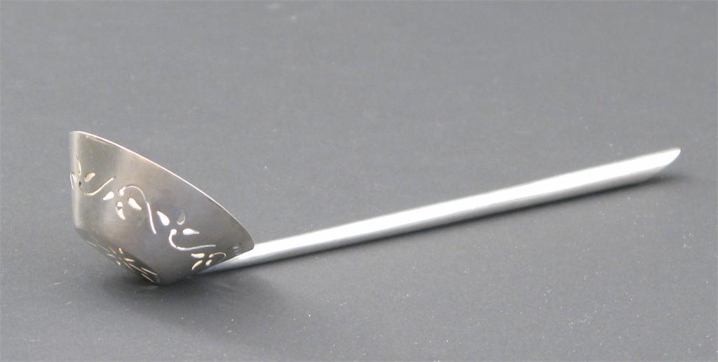 A silver sugar spoon stamped marks London 1887 15cm. diam.