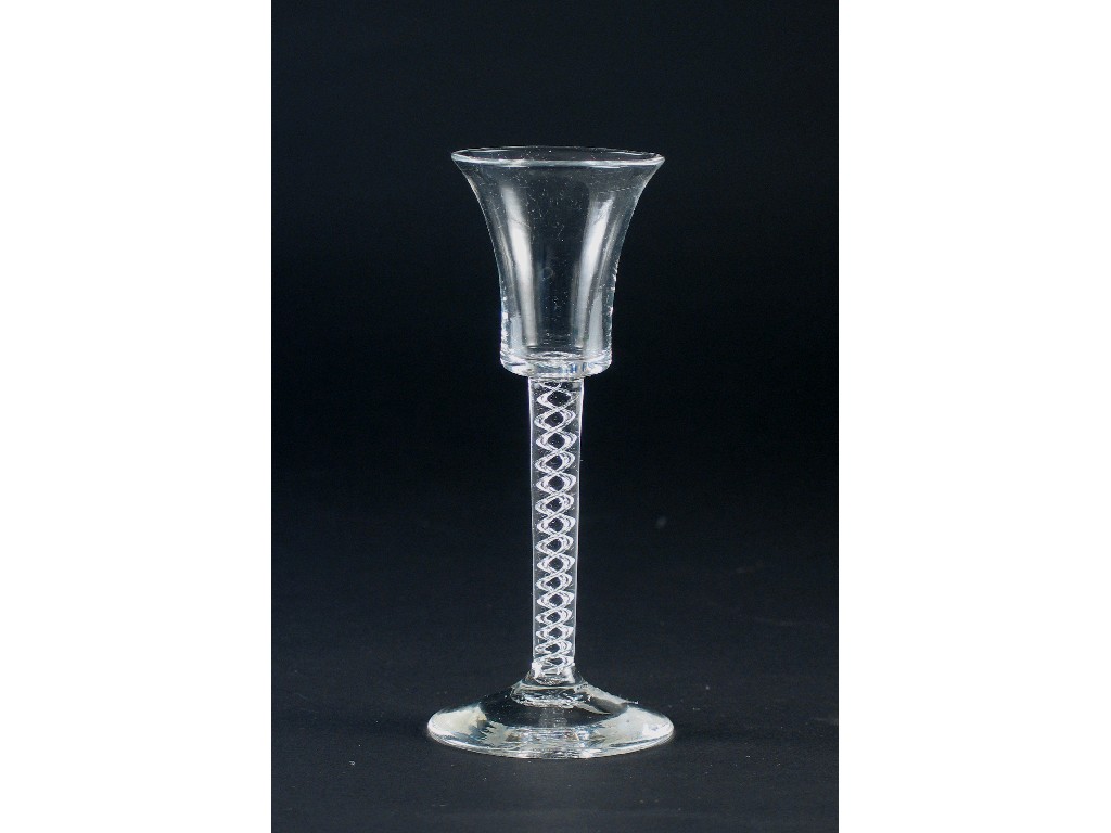 A wine glass, with a flared bucket bowl on a mercury twist stem, c.1760, 15.1cm.